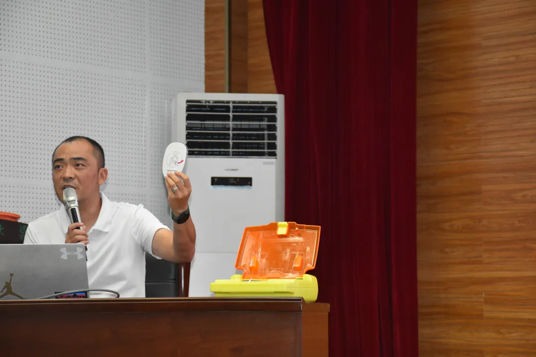 本次培训的主要内容包括CPR(心肺复苏)、AED(自动体外除颤器)使用和创伤救护等急救处置技能。培训过程中,辛阳用通俗易懂的语言,详细讲解了相关理论知识,并利用假人模型演示了心肺复苏的操作流程和气道异位梗阻的急救要领,带领同学们分解练习各个环节。同时,辛阳还使用了视频讲解的方式帮助同学们更清楚直观地学习创伤救护的包扎方法。