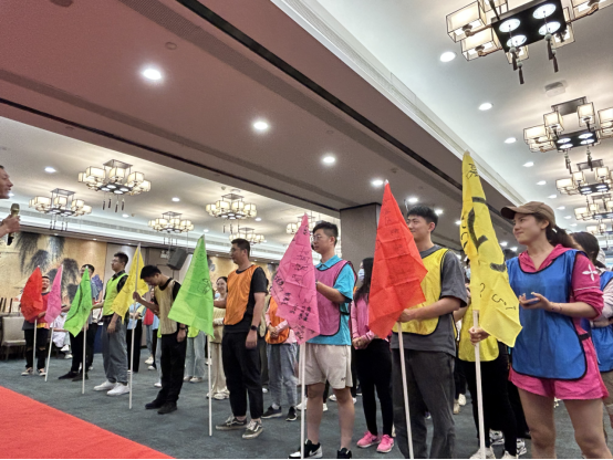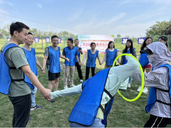 通过分组建队,偌大的拓展团队被分成八个小组,确定了队名、口号、队旗,并完成了团队风采展示。随后,在教练的带领下进行了具体科目训练。源于印度寓言故事的汉诺塔游戏,诠释逻辑思考的魅力;步步高升游戏,考验团队的细心与协作;峰回路转,隐喻成功的道路是曲折的,每一次跌倒重来都需要极大地勇气;极速飞盘是对自我的挑战,每一次开始,都需要我们调整身心状态,坦然出发......一场场全身心的比拼,一次次精诚团结的协作,一声声情到深处的欢呼,一张张青春灿然的笑脸,定格在一分一秒的时间消逝中。