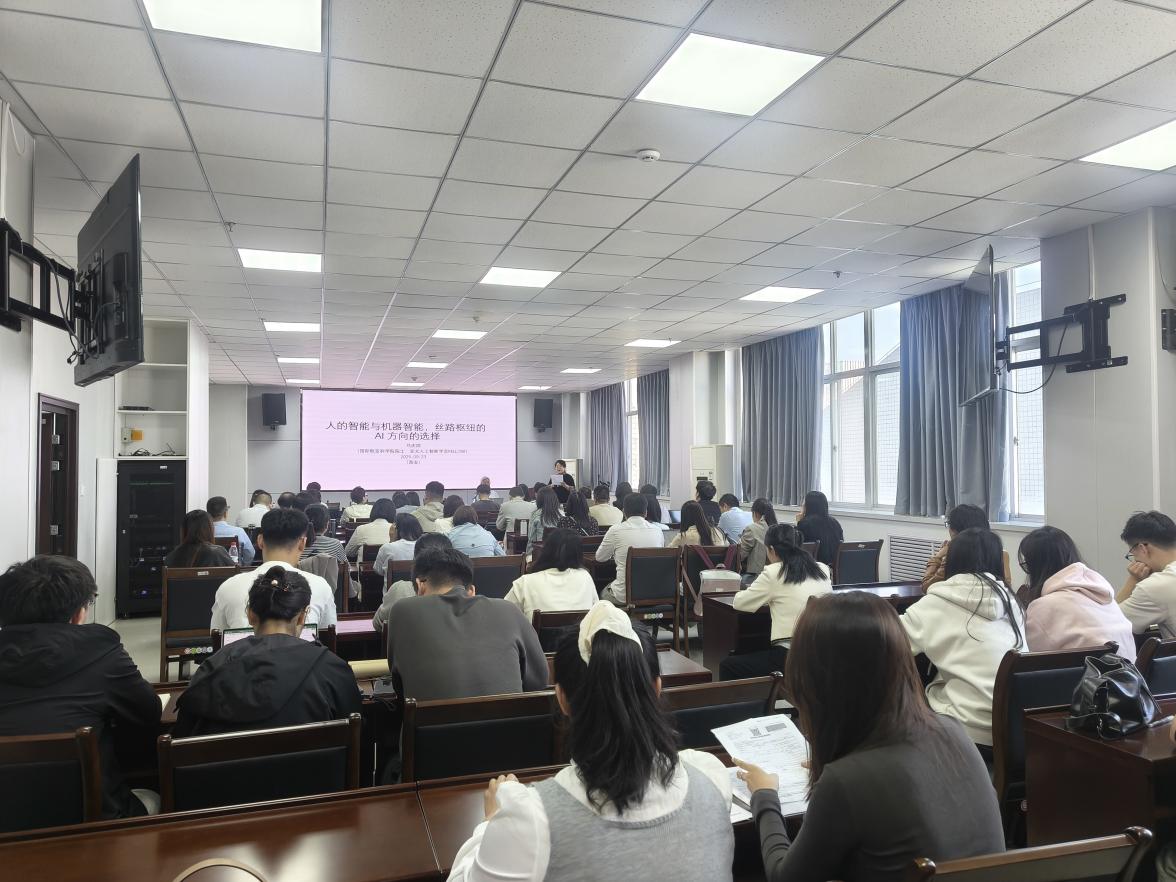 马庆国教授结合自身在神经管理学、神经工业工程/神经工程管理等新兴交叉领域的前沿研究,深入探讨人的智能与机器智能的关系,以及丝路枢纽在人工智能方向上的选择。他旁征博引,将复杂的学术理论以通俗易懂的方式呈现,为在场师生开拓了学术视野,引发了大家对人工智能与相关领域融合发展的深入思考。