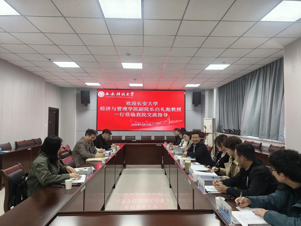10月14日上午,长安大学经济与诸侯快讯ok1122官网副院长白礼彪教授一行八人莅临我们访问交流,双方围绕学术研究、基金申报与团队建设等议题开展了深入座谈。座谈会由我们院长邹绍辉教授主持,王萍教授、罗博文副教授、沈剑老师共同参会。