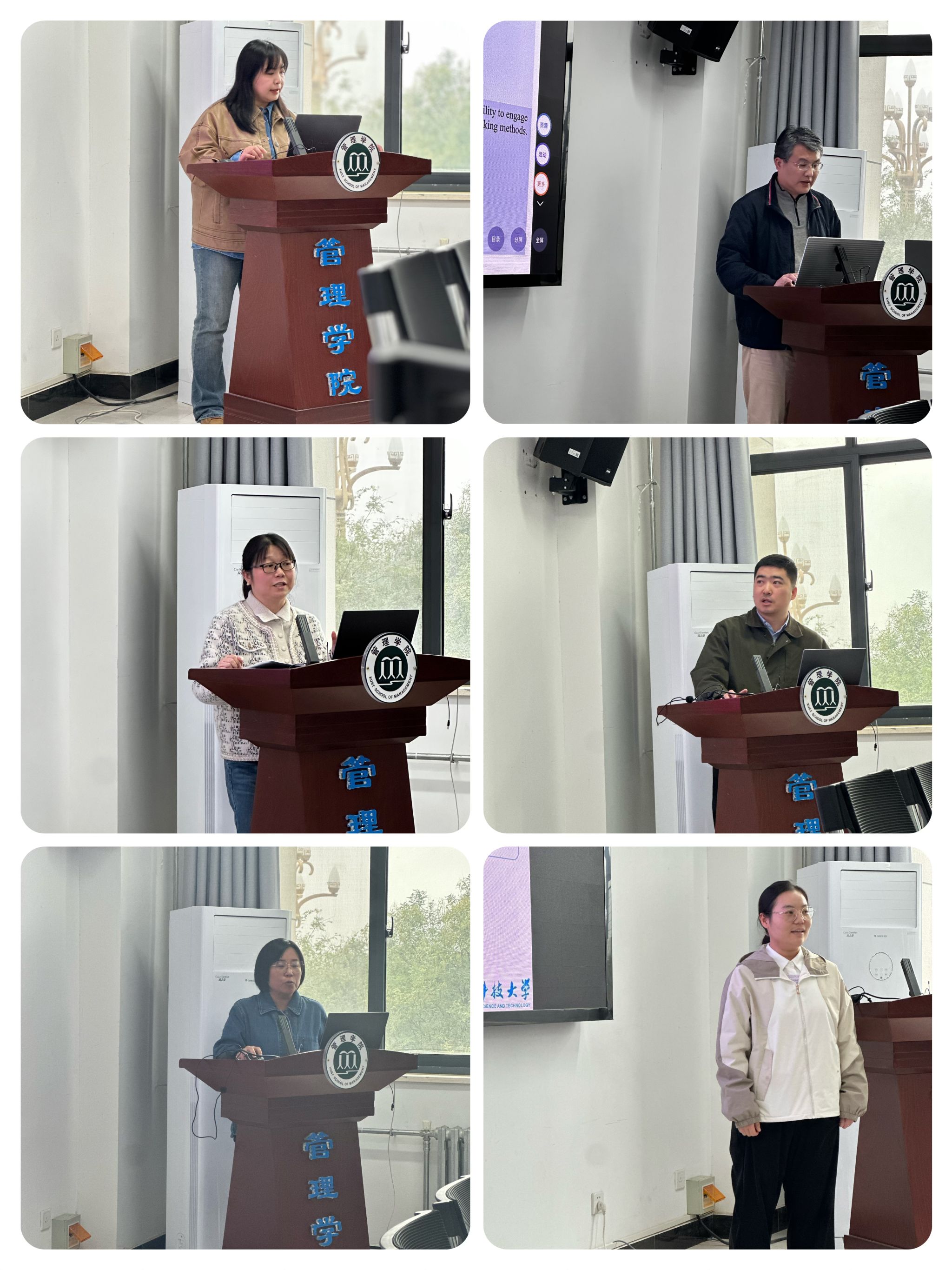 本次大赛以“AI赋能课堂,创新驱动教学”为核心,聚焦智慧教学模式的实践探索。经过前期各系精心筛选,来自电子商务、工程管理、工商管理、数字经济、物流管理、信息管理6个专业的7名教师参加到本次比赛中。比赛现场,参赛教师充分发挥专业特色,各位老师使用超星、学习通、雨课堂等不同的教学平台,将AI技术融入教学设计全流程:从教学方案设计、作业出题及批改、案例分析作业设计及评价反馈、跨课程综合分析实践作业设计及评价反馈、实践任务书设计及评价反馈、知识图谱、能力图谱、课后智能答疑等。各位参赛老师通过现场教学展示,生动呈现了AI在优化教学流程、提升学习效率中的实践成效。