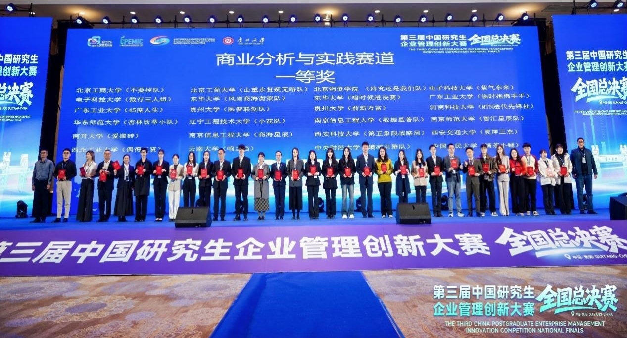 11月7日至9日,由教育部学位管理与研究生教育司指导,中国学位与研究生教育学会、中国科协青少年科技中心共同主办,全国工商管理专业学位研究生教育指导委员会联合主办的第三届中国研究生企业管理创新大赛全国总决赛在贵阳落幕。本届大赛共设四类赛道,我们学子奋勇拼搏,在三个赛道中均摘得一等奖,展现出卓越的综合实力与创新风采。
